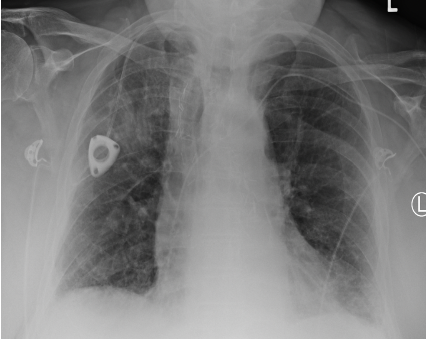 A pneumothorax is always a medical emergency until otherwise proven, as severe cases can be significantly life-threatening. Here is another example where the pneumothorax is in the top right (anatomically).