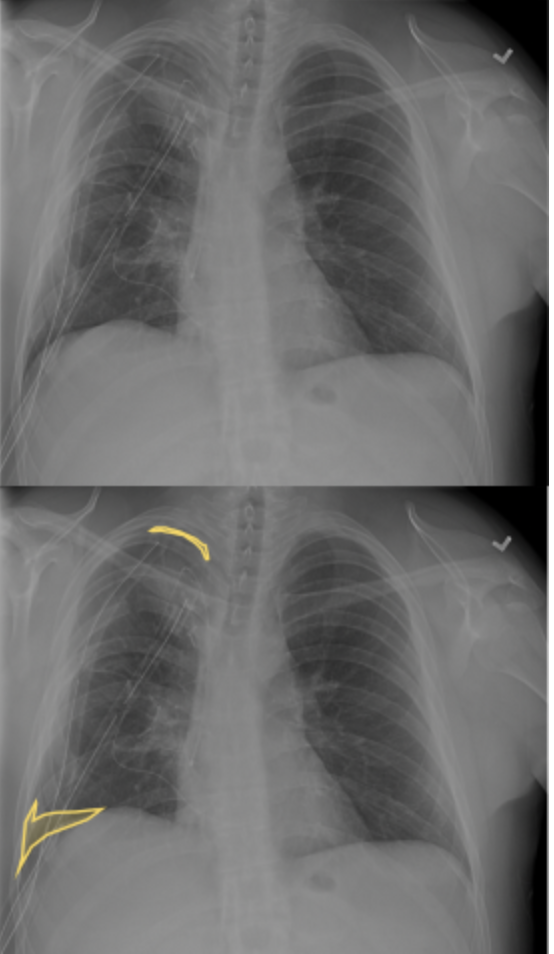 ⏰ Time to practice! The Practice section contains real cases that you will see in the competition. A pneumothorax is one of the hardest findings to discern, but your skills reading x-rays may save a life someday!
